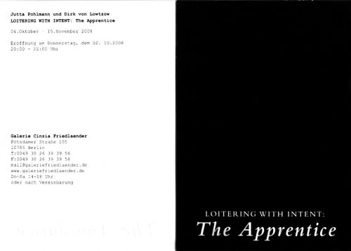 Art Exhibition "Loitering with Intend-the Apprentice" Jutta Pohlmann & Dirk von Lowtzow @ Galerie Friedlaender